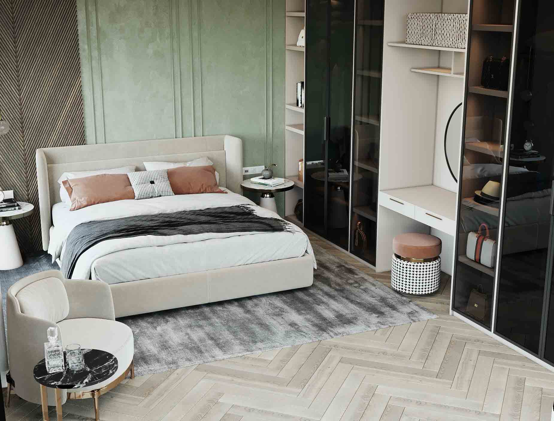 تصميم وتنفيذ شقة مميزة في مشروع مدينة قيوان. جميع عناصر المشروع من تنفيذ شركة باسيف أركيتكتس.