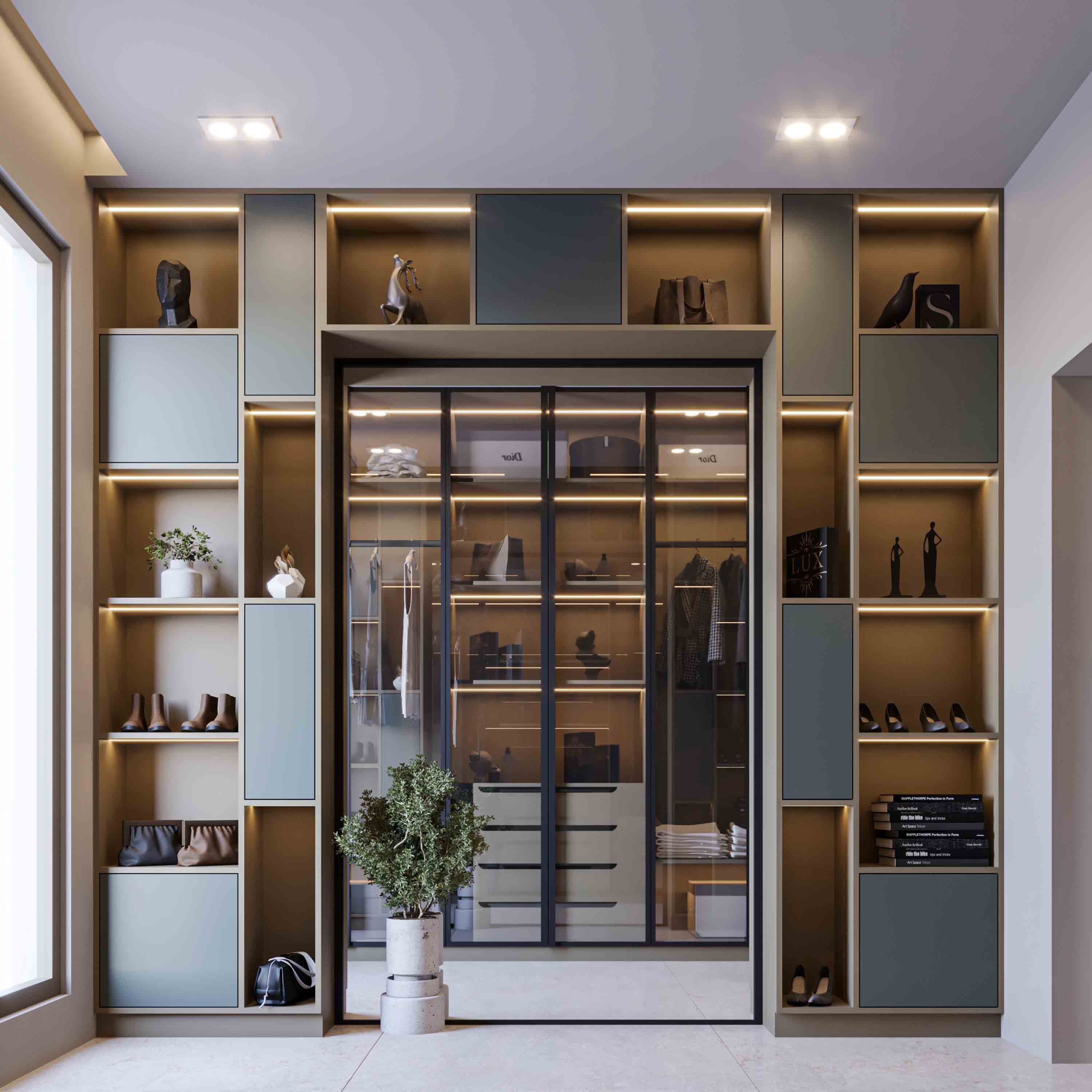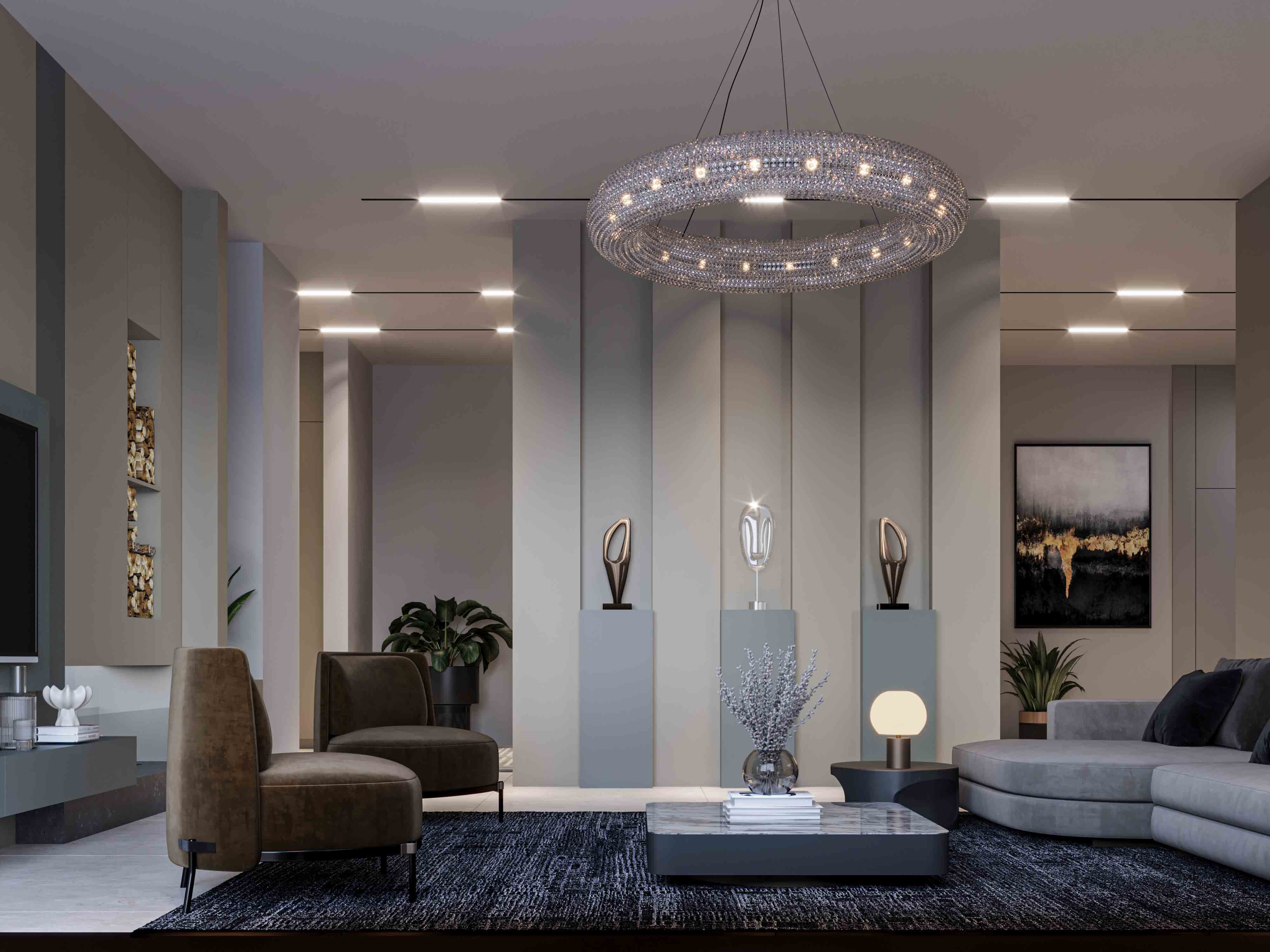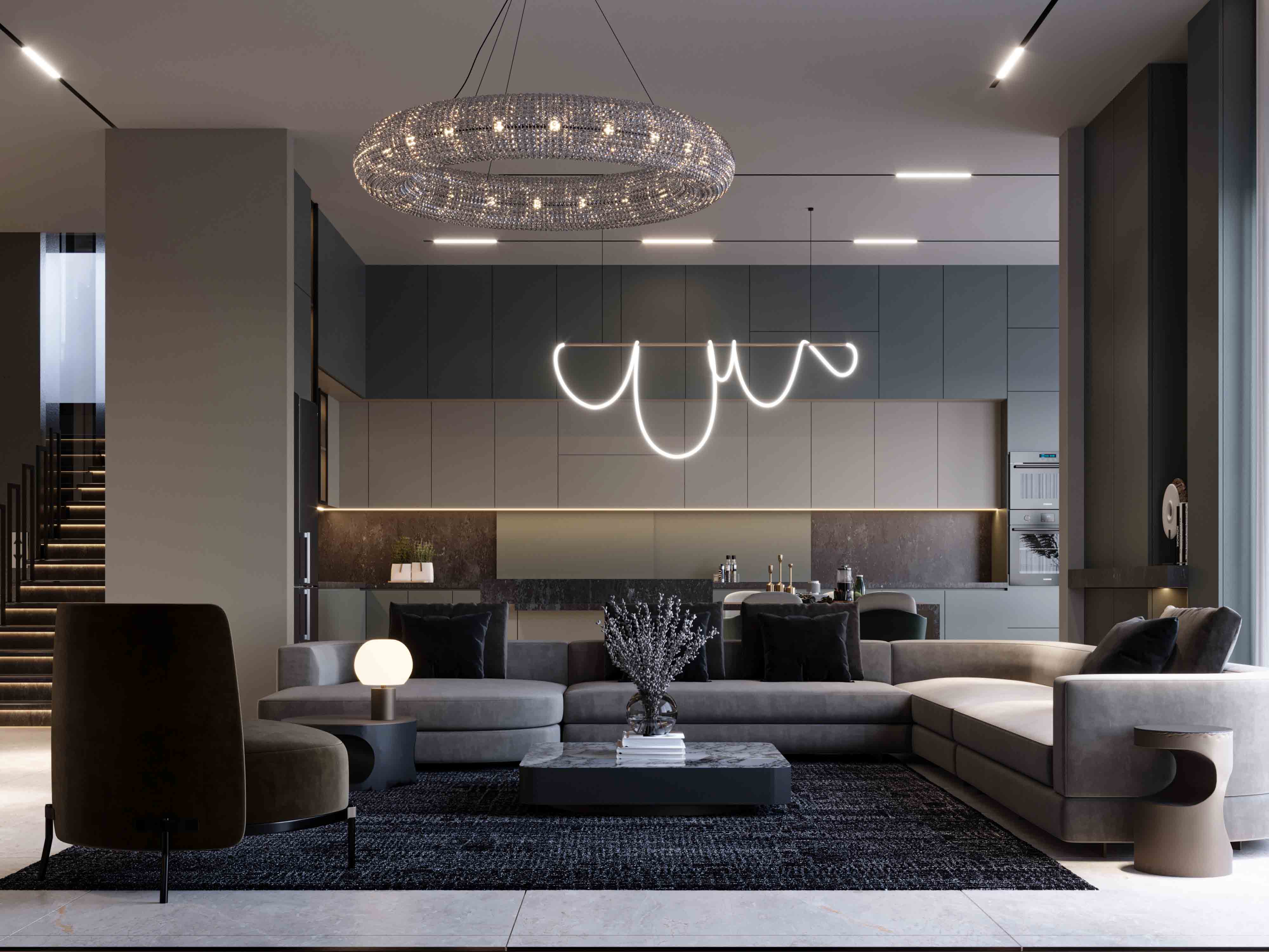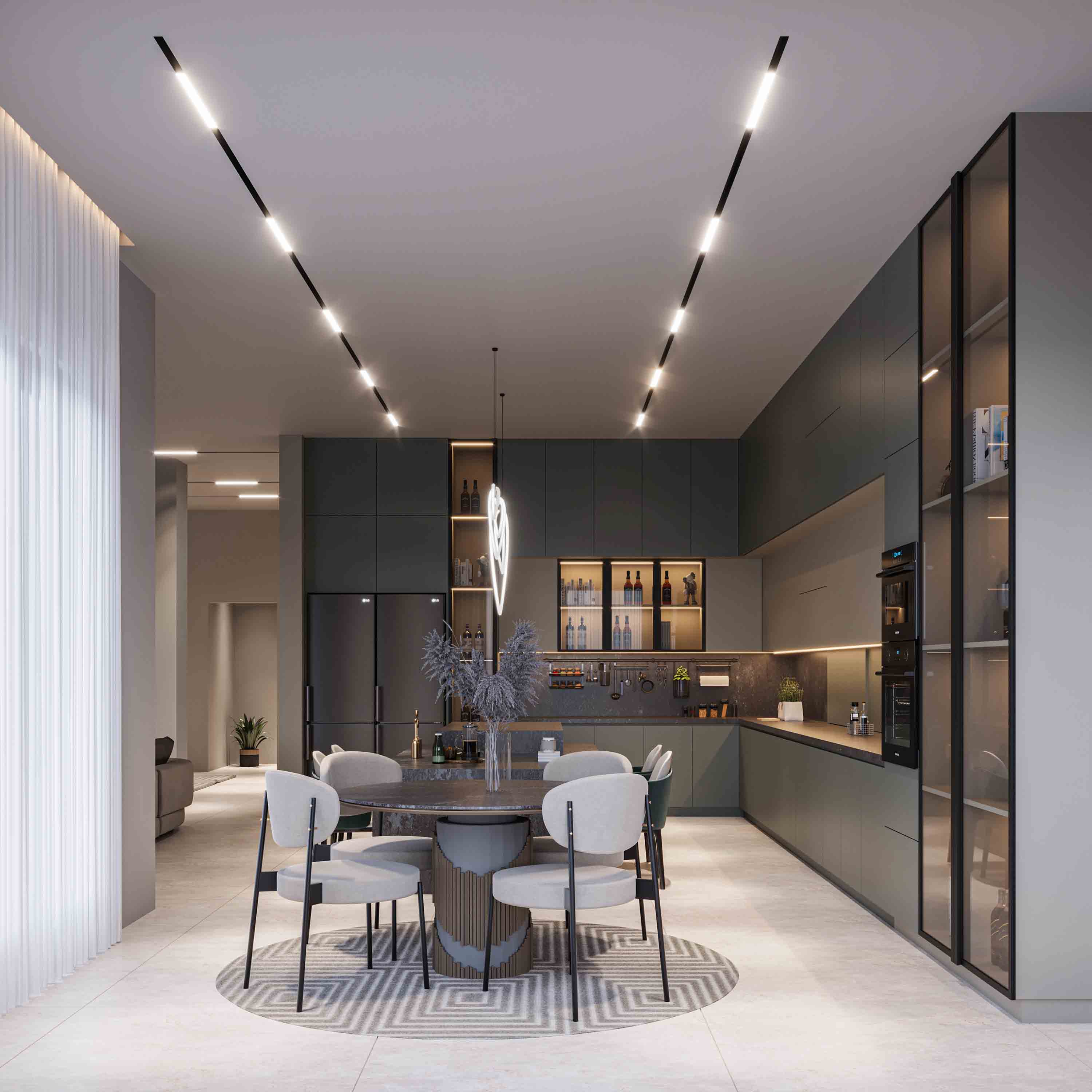 تصميم وتنفيذ شقة مميزة في مشروع مدينة قيوان. جميع عناصر المشروع من تنفيذ شركة باسيف أركيتكتس.