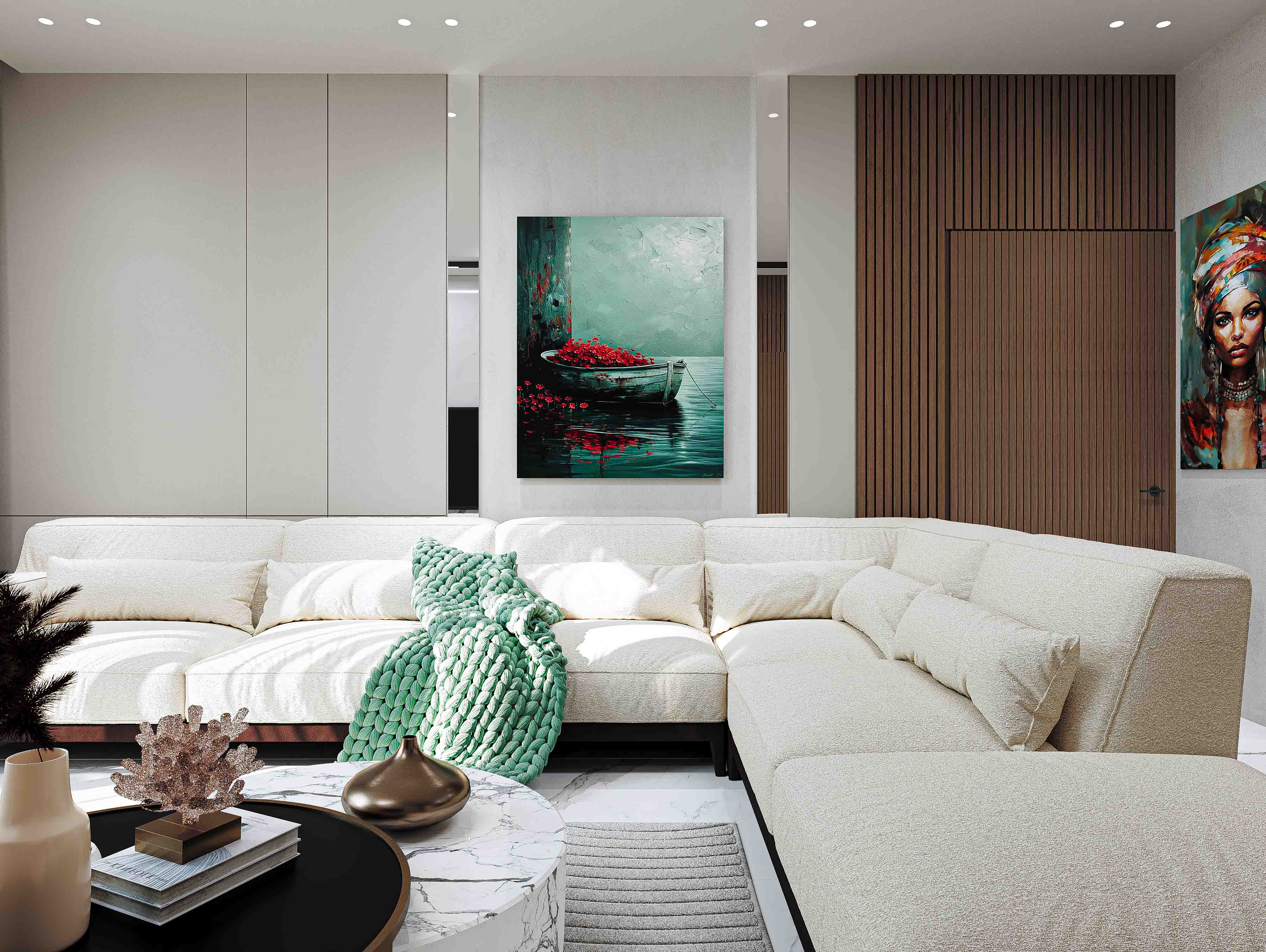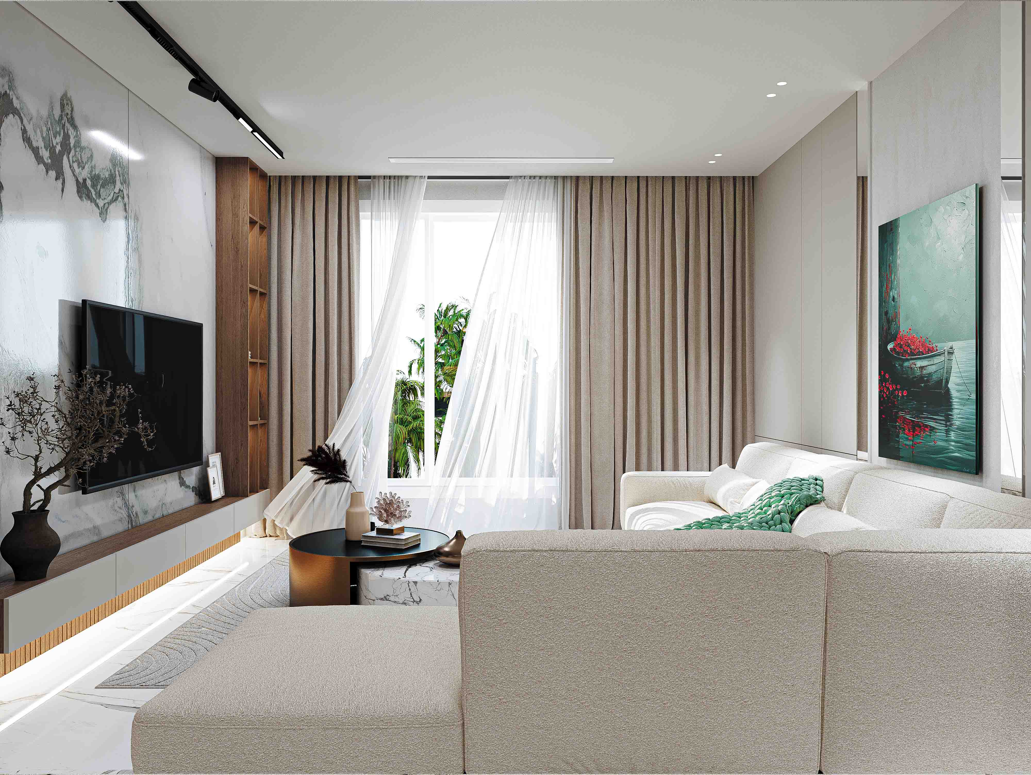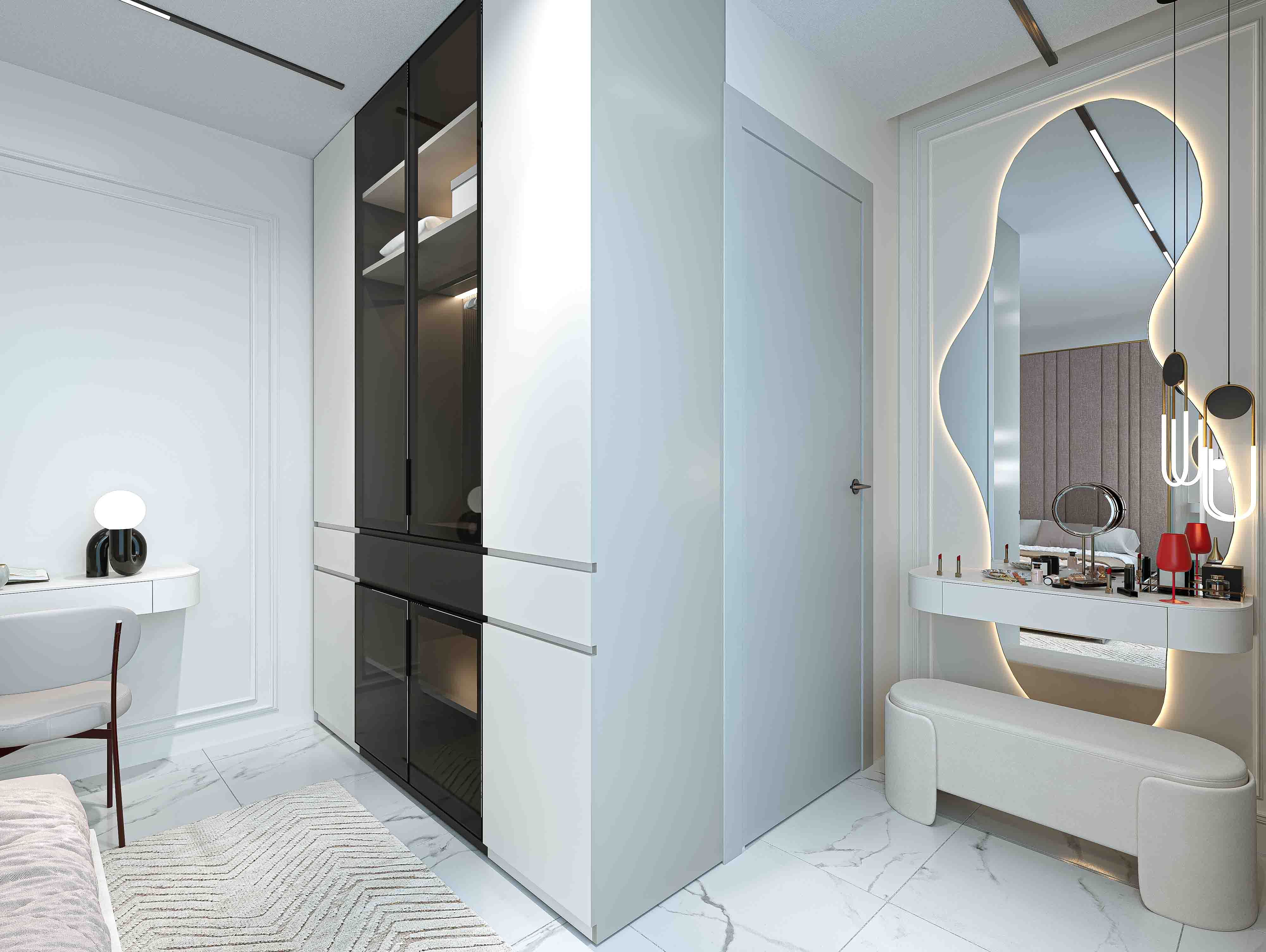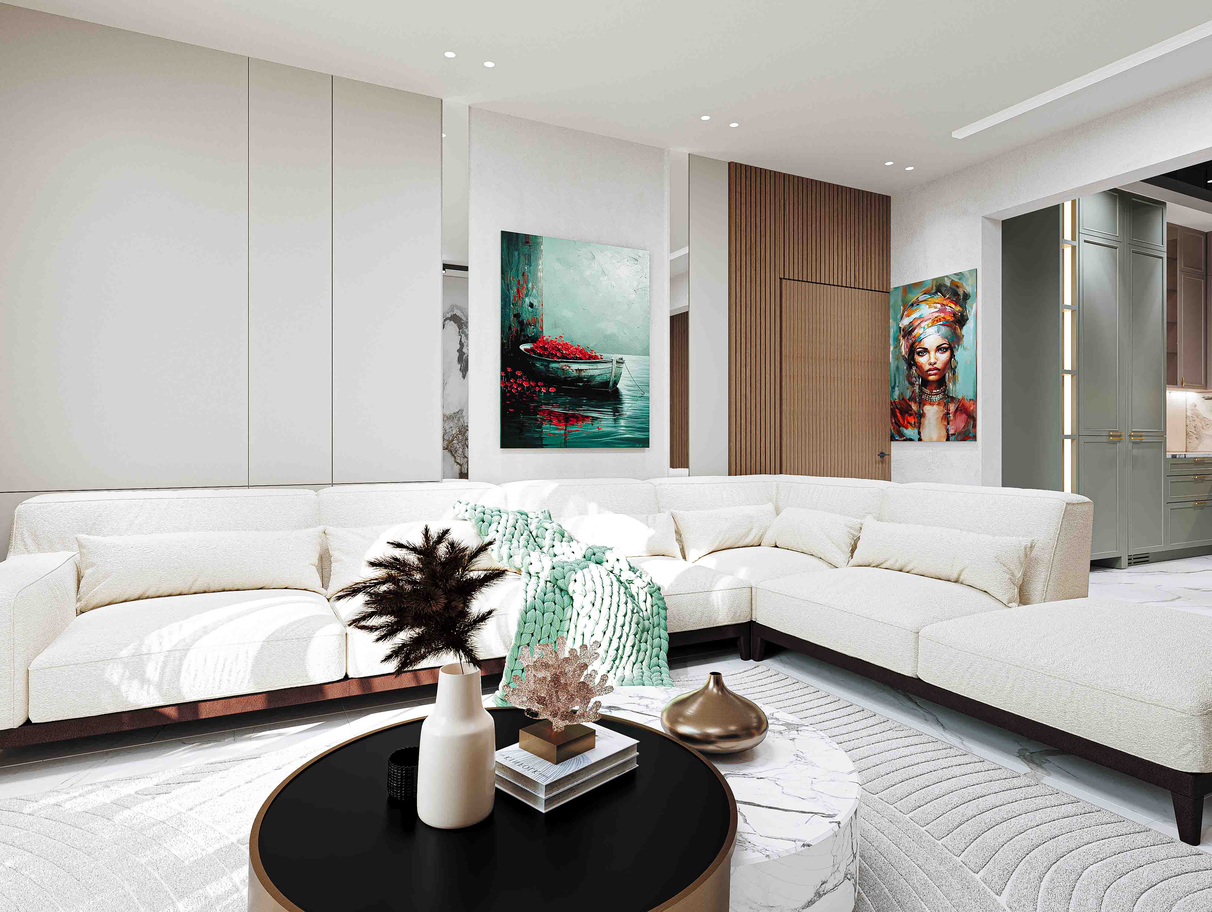 تصميم وتنفيذ شقة مميزة في مشروع مدينة قيوان. جميع عناصر المشروع من تنفيذ شركة باسيف أركيتكتس.