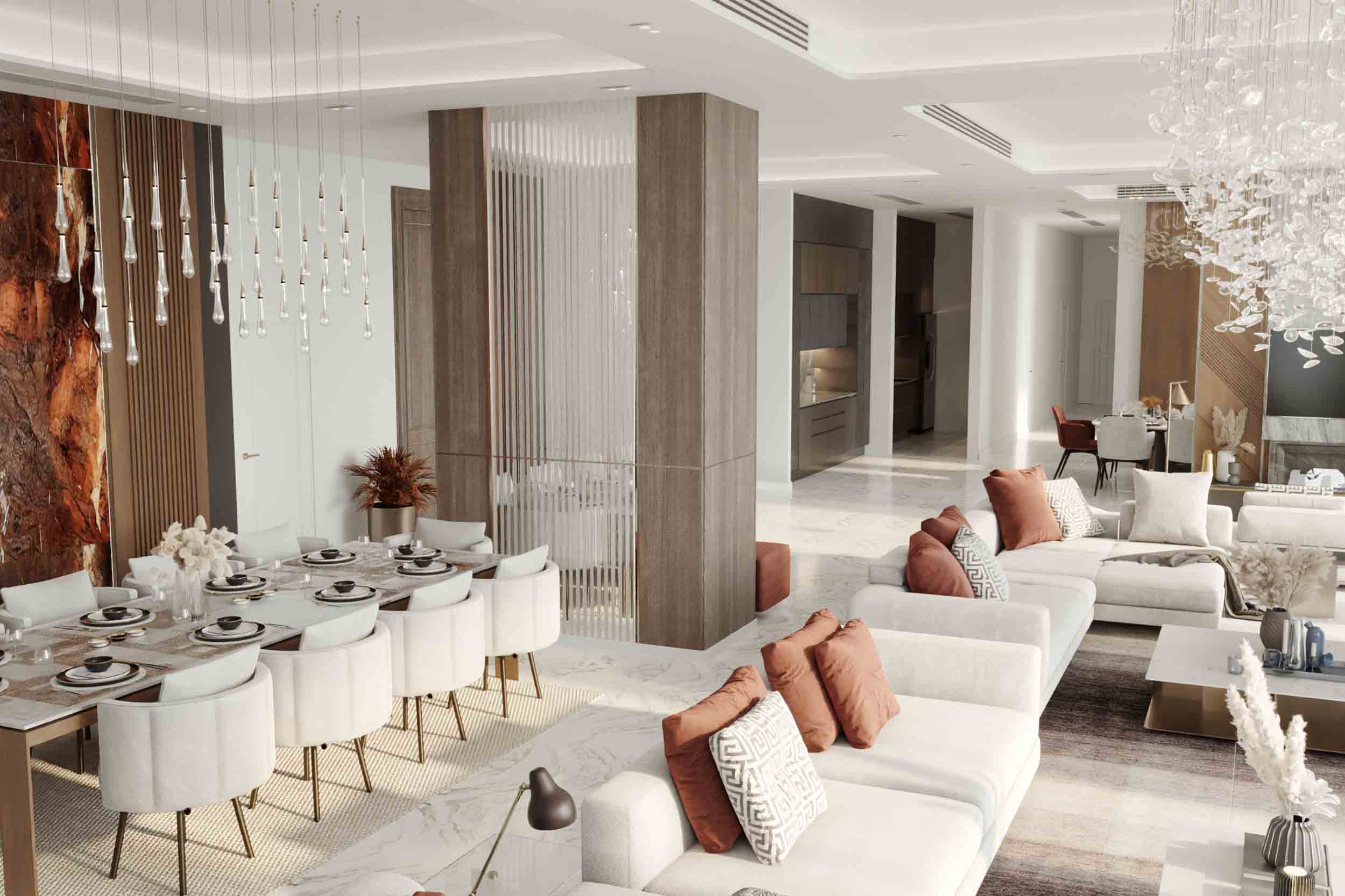 دیزاینێکی شاهانەیی بۆ ژووری نانخواردنی ڤێلایەك لە سلێمانی