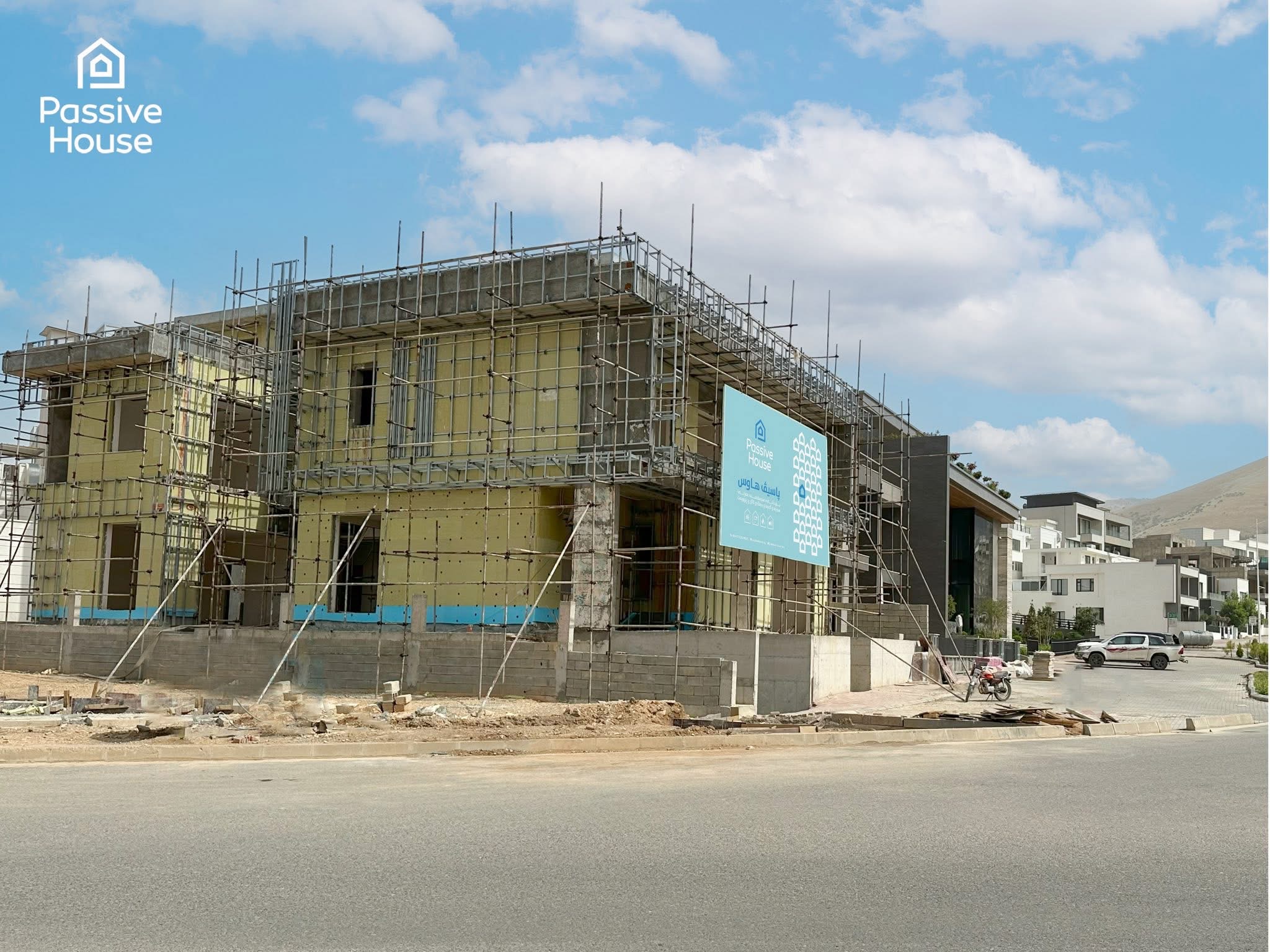 نموونی کارێکی دانانی سیستەمی عەزلی سەرما و گەرما بۆ ڤێلایەک لە بەرزاییەکانی سلێمانی بەبەکارهێنانی ڕۆک وڵ و فیلەی ئەڵمانی (210 g/m²).