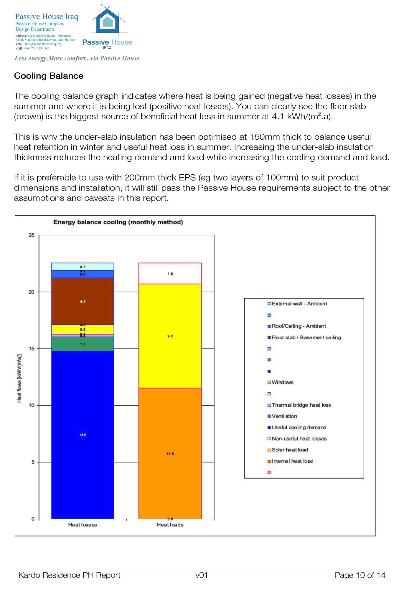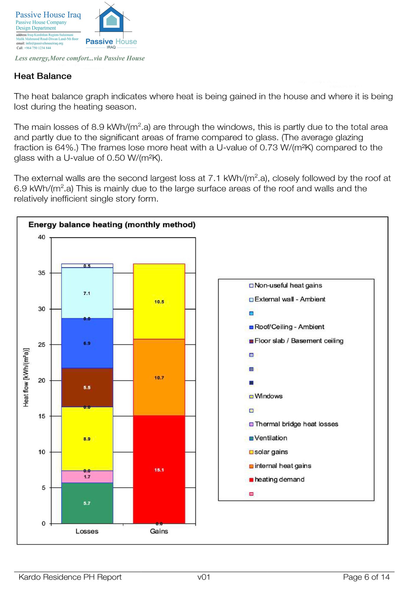 The area of the house is 167m2 square meters. Annually, only 2,505kWh of energy (electricity or oil) is required for heating, which is 72,000 Seventy-two thousand Iraqi dinars for the entire year!